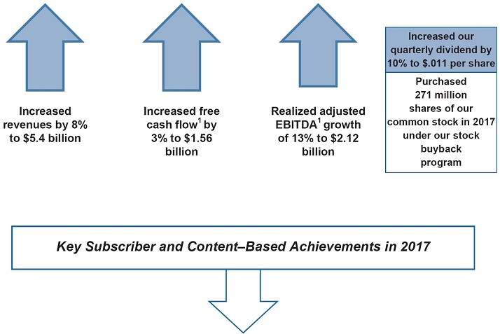 Last year we reported record levels of subscribers, revenues and profits, and we made considerable progress on a variety of strategic initiatives to build for the future. I am proud of what we achieved in 2017: