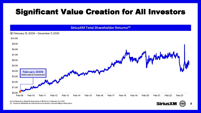 4 4 Today’s Speakers Jennifer Witz CEO of SiriusXM Greg Maffei President & CEO of Liberty Media, Chairman of SiriusXM