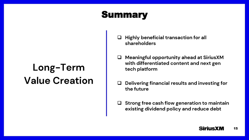 15 Summary Long - Term Value Creation □ Highly beneficial transaction for all shareholders □ Meaningful opportunity ahead at SiriusXM with differentiated content and next gen tech platform □ Delivering financial results and investing for the future □ Strong free cash flow generation to maintain existing dividend policy and reduce debt