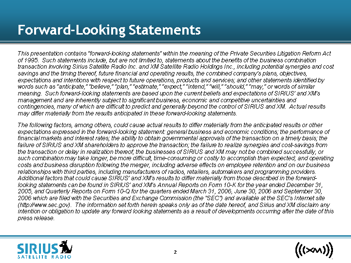 looking statements can be found in SIRIUS' and XM's Annual Reports on Form 10-K for the year ended December 31,