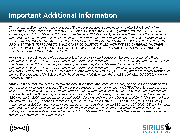 Sirius and XM. In connection with the proposed transaction, Sirius plans to file with the SEC a