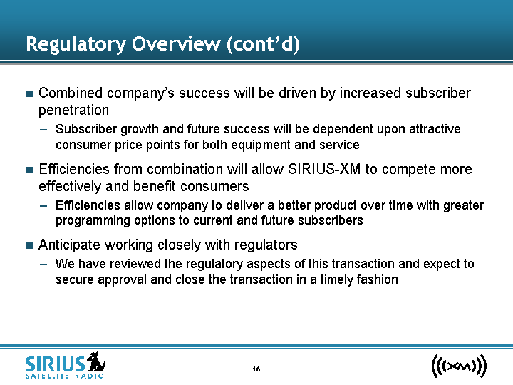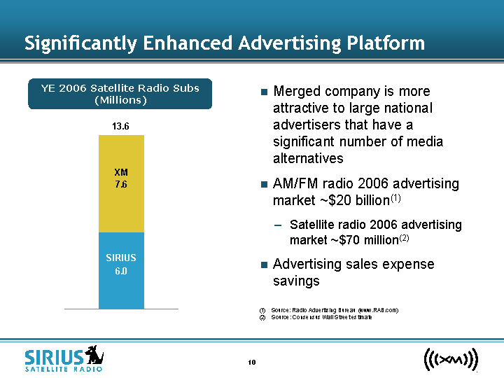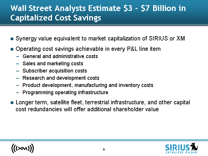 Radio Inc. and XM Satellite Radio Holdings Inc., including potential synergies and cost savings and