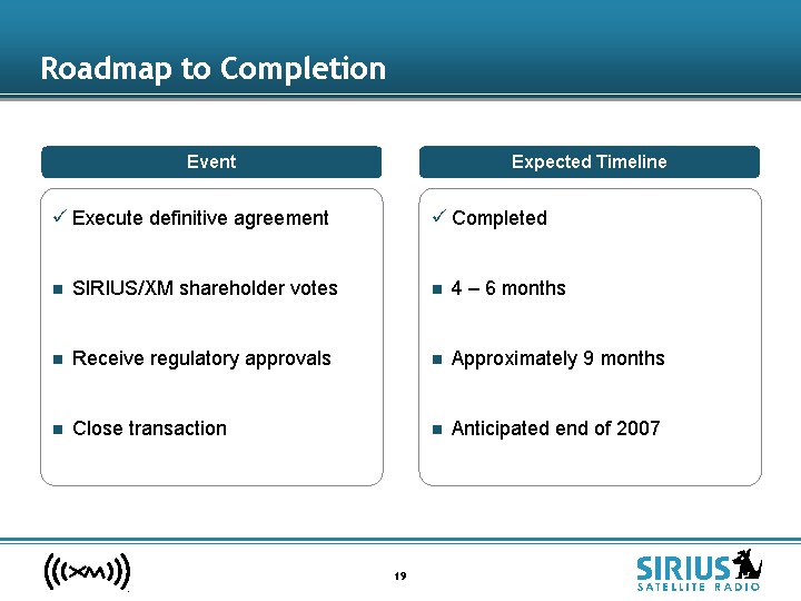 failure of SIRIUS and XM shareholders to approve the transaction; the failure to realize synergies and cost-savings from